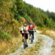 Zwei Männer Mountainbiking in den Hügeln von Wales.