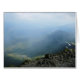 Blick vom Gipfel des Snowdon, dem höchsten Berg Wales. Mit Fernsicht auf Hügel, Felsen und Vögel im Vordergrund.