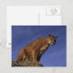 Ein wunderschöner Schuss eines Berglöwen, der mit einem tiefen blauen Himmel im Hintergrund herabschaut.