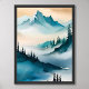 Ein ruhiges Berggemälde erfasst die ruhige Schönheit eines scheußlichen Hügels, wo sich Blautöne nahtlos mit Nebel und Wolken vermischen. Feine Wasserfarbenstriche machen das Bild der Pinienbäume lebendig, die die Landschaft bedecken. Dieses Kunstwerk spiegelt das coole und erfrischende Ambiente der Naturwunder wider und lädt die Zuschauer ein, die ruhige und beruhigende Umarmung der Berge und die Ruhe der Luft zu erleben. Kunstmalerei für Ihre Wohngestaltung. Sie können mit Rahmen und Kunstdruckpapier kaufen. Original Datei Bildgröße: 27'x34' inch (300 dpi).