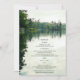 Diese Karte der rustikalen Hochzeitsdetails des Mountain Lake zeigt eine wunderschöne rustikale Szene unter einem bewölkten Himmel mit leicht gewölbtem, aber ruhigem Wasser, das entfernte Evergreens, Zedern und Felsstrukturen reflektiert, perfekt für einen Berg, einen See oder Hochzeitsfeiern am Flussufer - von katz_d_zynes | Teil der rustikalen Hochzeitssammlung Mountain Lake >> https://www.zazzle.com/collections/119499271518309609