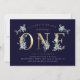 Die Blütenpracht im Bergsommer mit hellpastellblauen und grünen Blumen und Blättern auf einem Mitternachtsblauen Hintergrund mit goldenen Imitaten als prächtigen Akzent. Alle Informationen sind in einer Kombination von elegantem Skript und serifenlosen Schriftart bereit für Ihre Anpassung. Karo in unserem Shop für weitere Artikel aus dieser Kollektion.