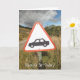 Ein altes inoffizielles Warnschild, das keinen Zugang zum Fahrzeug auf dieser schmalen und rauen Bergstrasse zeigt.