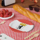 Papiertafel mit variabler Flagge von Berlin, Staatsflagge mit horizontalen Streifen in Rot und Weiß, mit einer Abbildung eines schwarzen Bären in einem Schild mit Krone