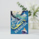 Bermuda Postkarte. Blumendesign einer schönen Meerjungfrau auf der Insel, und ein kommendes Boot.