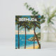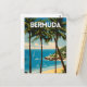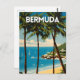 Bermuda Travel Poster Postcard Design. Bermuda ist ein britisches Inselgebiet im Nordatlantik, bekannt für seine rosa Sandstrände, das kristallklare Wasser und die einzigartige Mischung aus britischer und Inselkultur. Bekannt für das Schiffswrack Tauchen, historische Stätten und atemberaubende Küstenaussichten, ist es ein Paradies für Freibad- und Meeresfans.