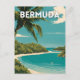 Bermuda Travel Postcard Design. Bermuda ist ein britisches Inselgebiet im Nordatlantik, bekannt für seine rosa Sandstrände, das kristallklare Wasser und die einzigartige Mischung aus britischer und Inselkultur. Bekannt für das Schiffswrack Tauchen, historische Stätten und atemberaubende Küstenaussichten, ist es ein Paradies für Freibad- und Meeresfans.