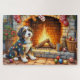 This cozy Christmas illustration features an adorable Bernedoodle sitting beside a glowing fireplace, wrapped in twinkling Christmas lights with festive stockings hanging overhead. The breed’s fluffy coat and sweet expression bring extra warmth and charm to this heartwarming holiday scene. Perfect for Bernedoodle lovers, seasonal décor fans, and Zazzle shoppers looking for unique Christmas art that highlights their favorite doodle breed.