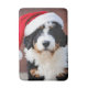 Niedliches Bernedoodle mit einer Weihnachtsmannmütze.