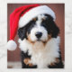 Niedliches Bernedoodle mit einer Weihnachtsmannmütze.