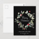 Cette carte de voeux minimaliste de Noël présente un cadre botanique de Noël avec baies rouges, feuilles verdoyants et brindilles vert clair sur l'arrière - plan noir simple. S'il vous plaît vos proches avec cette carte de Noël élégante.