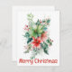 Belle Poinsettia, baies et feuille (sorte de Noël Holly) carte de voeux de Noël. Un arrangement floral d'aquarelle généré par l'IA.