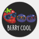 Berry Cool Funny Strawberry Blueberry Pun Dark BG Runder Aufkleber