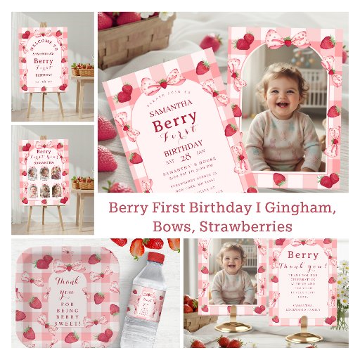 Berry First Birthday I Gingham, Bows, StrawberriesDesignt von Snjeza N.