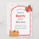 Une invitation sucrée et charmante au thème de la fraise, parfaite pour le premier anniversaire de la baie de votre petite fille ! Doté de fraises d'aquarelle, d'un arrière - plan rose en vichy et d'une typographie ludique, cet invitation ajoute une touche fantaisiste à votre fête estivale. Entièrement personnalisable et parfait pour une fête ludique, fraîche et fruitée !
