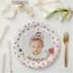 Set einen zauberhaften Tisch für die Geburtstagsfeier "Beerry First" mit diesen zauberhaften Tellern aus Papier! Das bezaubernde Aquarelldesign besticht durch eine whimsikale Schnecke mit einem Erdbeerhaus als Muschel, das anmutig von süßen Erdbeeren und einem winzigen Ladybug umgeben ist. Im Teller befindet sich ein eigener Platzhalter für ein Foto, das Sie einfach durch das Bild Ihres kleinen ersetzen können. Personalisiert mit dem Namen Ihres Kindes Set vor einem weichen rosa Aquarell, sind diese Teller perfekt für Kuchen, Snacks oder leichte Mahlzeiten. Sie sorgen dafür, dass jedes Detail Ihres Party so "beersüß" wie möglich ist, und ergänzen wunderbar Ihre Geburtstagssammlung "Berry First" und sorgen für eine sanfte Brise.