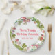 Schöne Aquarelltypografie umgeben von Wasserfarben-Erdbeeren und Blattwerk - mit ihrem Namen und Geburtstagsdatum anpassen.