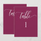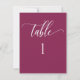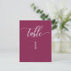 Moderne und elegante Beerennummer im minimalistischen Stil mit modernen handgeschriebenen Kalligrafiedetails. Klare Fläche unten, sodass Sie alle Arten von Tischnummer-Halter verwenden können, ohne die Zahl zu behindern. Moderne mittelgroße Karte für ein schlankes, einfaches Aussehen. Erhältlich in verschiedenen Farben. Haben Sie alle Tabellen in der gleichen Farbe, oder mischen Sie mehrere Farben, die Ihr Farbmotiv ergänzen. Auch die Koordination von Tischplakatkarten mit Gästennamen und schlanken Platzkarten mit Gästebamen ist möglich.