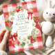 Feiern Sie die Ankunft Ihres Kleinen mit unserer Berry Sweet Baby Shower Invitation, eine reizvolle Mischung aus Charme und Eleganz. Die Einladung umfasst einen skurrilen Rahmen, der mit weißen Gänseblümchen, blühenden roten Erdbeeren und üppigen grünen Blätter geschmückt ist. Set vor einem roten Gingham-Hintergrund, es spiegelt perfekt die Freude und Süße Ihrer bevorstehenden Feier. Lade deine Lieben ein, an diesem besonderen Augenblick mit einer Touch spielerischer Eleganz teilzunehmen.