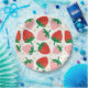 A playful pattern of large pink and red strawberries, with fresh green leaves and soft yellow-white strawberry flowers. Available in three charming tones: delicate blush pink, subtle pastel blue, and a gentle olive green, each bringing a fresh, fruity vibe to your day. A sweet and cheerful design for anyone who loves fruity vibes, pastel colors, and feel-good energy.