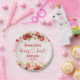 Featuring watercolor strawberries, soft florals, and a warm pink background, these plates are both playful and elegant, making them perfect for a first birthday celebration. The design adds a charming decorative element to the table while staying practical for cake, snacks, and desserts.