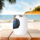 Berthoud Pass Open drink container with ski goggles and a photograph from the top of the pass.
