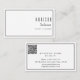 Es ist eine Berufliche elegante, moderne Black & White einfache Schlichte, individuell anpassbare Business Card. Moderner, schick-minimalistischer Skriptname mit dem Grenzdesign auf farbeditierbarem weißem Hintergrund, individueller Name und Jobtitel, Geschäftsinformationen und optionaler QR-Code auf der Rückseite, einfach und elegant, großartig beruflicher Luxus-Visitenkarte.Es ist ideal für Real-Anwesen-Agent, Anwälte, Broker, Buchhalter, Makler, Rechtsanwälte und Corporate Professionals.