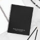 Berufliches Notebook mit individuelle Name und Text im klassischen, weißen Serif-Schriftart auf schwarzem Hintergrund.
