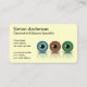 © Sunny Mars Designs. Diese Vorlage für die horizontale Visitenkarte in individueller Optometrie weist ein Set von drei Blickwinkeln auf. Ein Blau, ein Braun und ein Grün, horizontal mit Schatten und Reflexion aufgereiht. Diese Visitenkarte ist ideal für einen Optometriker, Augenspezialisten, für jeden in der Augenheilkunde oder Sehbranche oder für jemanden, der sich auf die Herstellung oder den Verkauf kosmetischer Kontaktlinsen spezialisiert hat. Passen Sie es mit Ihren persönlichen Daten an.
