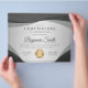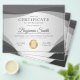 Der berufliche Award-Flyer mit dunkelgrauen Wellenformen, hellgrauem Hintergrund und einer glänzenden Goldmedaille.