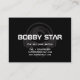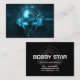 Einzigartige DJ-Besuchskarte mit einem abstrakten blauen explodierenden DJ-Symbol auf einer Karte des dunklen Schwarzen. Eine berufliche DJ- und Produzentgeschäftskarte!