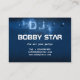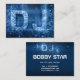 Einzigartige DJ-Besuchskarte mit einem abstrakten blauen Eis, das DJ-Symbol auf einer Karte des dunklen Schwarzen explodiert. Eine berufliche DJ- und Produzentgeschäftskarte!
