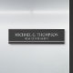 Berufliches Elegantes Schwarz-Weiß-Türzeichen mit Namen und Beruf im klassischen, weißen Serifenstil mit weißer Schriftart, schwarzem Hintergrund. Ideal für einen echten Anwesen-Agent, Designer, Anwalt, Berater und viele andere Berufe.