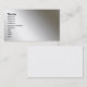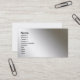 Fügen Sie leicht Ihren eigenen Text in die Vorlagen hinzu, um Ihre eigenen beruflichen Geschäftskarten besonders anzufertigen. Der Hintergrund ist ein schlichter silberner Metallblickentwurf und die Rückseite wird das leere Weiß verlassen, vorsätzlich, zum an später zu schreiben, wie gebraucht. Perfekt und erschwinglich für irgendein Geschäft.