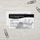 Reinigungsservice-Geschäftskarten in einer beruflichen Schablone entwerfen mit einer Grafik, die leicht im Hintergrund der Reinigungsversorgungen und des einfachen organisierten Plans für Reinigungsdienstleistungen eines beruflichen Hauses oder des Büros gedruckt wird.