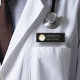 Hier finden Sie ein klassisches Abzeichen mit medizinischem Thema in Gold und Schwarz, das für Ärzte, Ärzte, die in einer medizinischen Gruppenpraxis arbeiten, oder für die Identifizierung Ihres Büroraums oder medizinischer Hilfskräfte konzipiert ist.