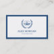 Benutzen Sie diese berufliche Visitenkarte für einen Anwalt mit seiner klassischen Design-Vorlage in blau und weiß mit Text-Vorlagen, um online anzupassen. Die Maßstäbe der Gerechtigkeit im Lorbeerkranz