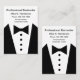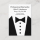 Grafische Geschäftskarten des Tuxedo Kartenschablone für ein beruflichen des Barkeepers, des persönlichen Hausmeisters oder des persönlichen Assistenten Geschäft entworfen als Entwurf mit zwei Seiten mit Bild einer Tuxedo- und Bogen-Krawattengraphik und des einfachen Plans, die Sie online besonders anfertigen können. Dargestellt auf Geschäftskarten des großen Formats, die in der Vertikale breiter als Standardgrößen-Geschäftskarten für visuellere Auswirkung sind.