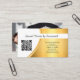Ein Gold mit mittleren Flair-Sets vor dem Hintergrund dieses Visitenkartendesigns, das Ihren QR-Code vorne und ein benutzerdefiniertes Foto auf der Rückseite enthält. Füllen Sie die Vorlagenfelder aus, oder klicken Sie auf Anpassen, um den gewünschten Stil, die gewünschte Größe und Schriftart auszuwählen. Achten Sie darauf, IHREN QR-Code auf der Vorderseite und ein vertikales Foto auf der Rückseite hinzuzufügen. Verwenden Sie den QR-Code-Link, um Kunden zu Rezensionen, Fotos, Ihrer Website oder einem anderen wichtigen Link zu schicken.