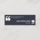 Ein einfaches Design mit einer dunkelblauen Abdeckung, die durch Anführungszeichen an den oberen und unteren Ecken verstärkt wird. Ihr Prestigename und Ihr Jobtitel befinden sich in der Nähe der Basis, während die Kontaktdaten ganz oben sind.