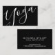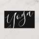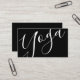 Die berufliche moderne Black and White Yoga Instructor Business Card mit dem Wort "Yoga" im modernen Kalligraphie-Schriftart-Stil auf der Vorderseite und Details im modernen Sans Serif Schriftart Stil auf der Rückseite.