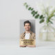 Moderne Visitenkarte mit Ihrem Foto überlagert mit Ihrem Namen und Beruf fett Typografie auf einem gebürsteten goldfarbenen Imitat Metallstreifen. Fügen Sie auf der Rückseite Ihre Kontaktinformationen hinzu und fügen Sie eine Adresse hinzu, um einen scannbaren QR-Code zu erstellen, der mit Ihrer Website, Ihrem Portfolio, Ihrem Social Media-Profil oder einer anderen Plattform verbunden ist, die Ihre Arbeit präsentiert. Dies erleichtert Kunden und Kunden die Erkundung Ihrer Expertise.