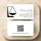 Minimale Visitenkarte für Anwälte mit einer abstrakten Abbildung der Maßstäbe für Justiz und Ihren Namen, Titel (Anwalt bei Recht, Rechtsberater, Partner, etc.) und Kontaktinformationen (wie E-Mail, Telefonnummern, Firmenname und Postanschrift) in sauberer, einfacher und moderner Schrift. Auf der Rückseite geben Sie eine Web-Adresse ein, um einen scannbaren QR-Code zu erstellen, der mit Ihrer Website verlinkt ist, und fügen Sie zusätzlichen Text hinzu oder verließ leer.