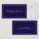 Berufliche Simple Modern Navy Blue and White Business Card mit Ihrem Namen im modernen Kalligraphie Schriftart Stil und Informationen in modernen sans serif Schriftart Stil mit weißem Rechteck Rand. Ideal für Makeup-Künstler, Designer, Fotografen, Hochzeitsplaner und viele andere Berufe.