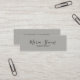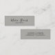 Beruflich Elegante Silver Mini Business Card mit dem allgemeinen Namen in einem luxuriösen Chic Stil, gefolgt von der Spezialität in der Vorderseite, vollständiger Skriptname, Karriere und Infos im Hintergrund.