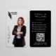 Moderne, elegante und berufliche Visitenkarte. Das Design verfügt über einen ausgeschnittenen Platzhalter für Fotos, mit dem Sie Ihr eigenes Foto, Ihr Firmenlogo, Ihren Namen und Ihren Titel auf der Vorderseite anzeigen können. Personalisieren Sie weiter mit Ihren Kontaktdaten, QR-Code und Social Media auf der Rückseite. Damit das Design wie die Beispielvorlage aussehen kann, laden Sie Ihr persönliches Business-Foto mit einem transparenten oder weißen Hintergrund im PNG-Format hoch. Schriftart, Textgröße, Farben können angepasst werden.