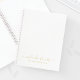 Berufliches modernes Notebook mit Namen im modernen, goldfarbenen Script-Schriftart-Stil mit individuellem Text in modernem Sans Serif Schriftart Stil auf weißem Hintergrund. Bitte beachten Sie: Die Details der Folie werden im Kunstwerk simuliert. Bei der Herstellung dieses Produktes wird keine Folie verwendet.