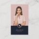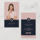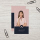 Modernes, feminines Monogramm-Design mit Ihrer Foto- und Fontäne-Silhouette, lässigem Skript-Schriftart und modernem Schriftart auf dem pastellfarbenen Rosa-Hintergrund. Elegantes und elegantes Design für Ihr mobiles Notar-, Versicherungs- oder Hypothekengeschäft