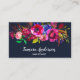 Personifizieren Sie leicht diesen eleganten böhmischen BlumenVisitenkarteentwurf, der Burgunder-, Blaue und rosablumenelemente auf einem dunklen Marineblauhintergrund kennzeichnet. Moderne Typografie in trendy Hand beschriftetem Skript-Schriftart ist auf der Front der Karte, und Ihre Geschäftsinformationen sind auf der Rückseite. Leicht kundengerecht mit Ihrem eigenen Namen und Geschäftsinformationen, einschließlich Sozialmedien. Vervollkommnen Sie für den Hairstylist, den Make-upkünstler, den Eyelashkünstler, den Innenarchitekten, den Ereignisplaner, oder irgendeinen anderen der berufliche Service. Gelassen mir wissen Sie, wenn Sie irgendeine Hilfe beim Besonders anfertigen dieser Geschäftskarte benötigen, oder möchte andere Produkte mit diesem Entwurf! Mehr redet verfügbares an meinem Speicher an: