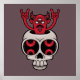 Vector Cartoon Illustration eines Dämons aus einem Schädel mit Heavy Metal Teufel Horn Handgesten.